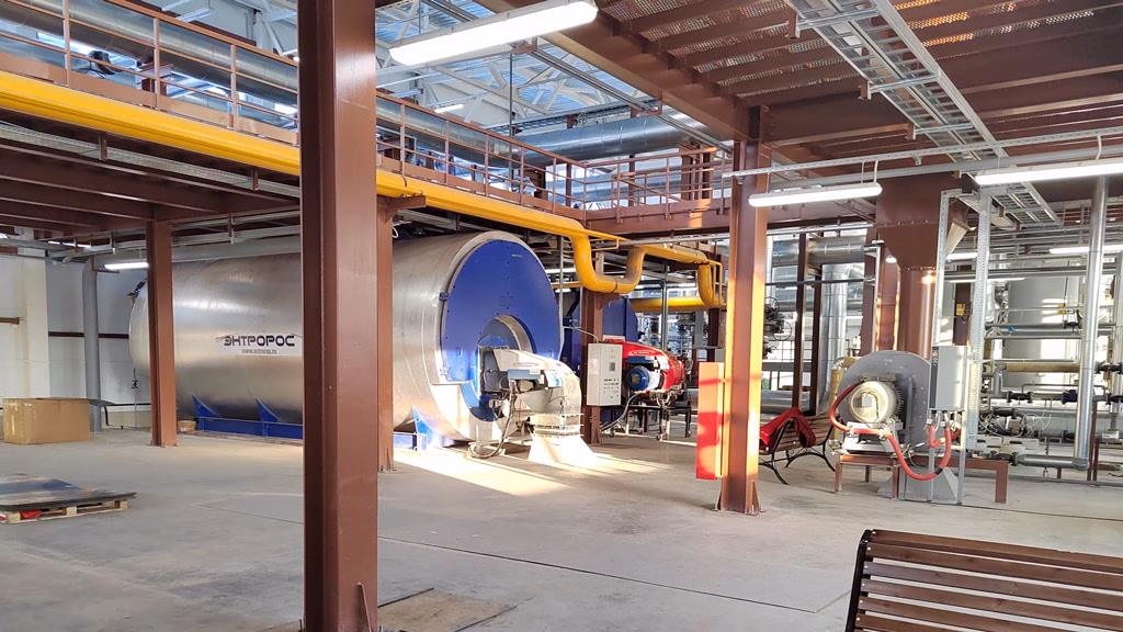 1-й Этап: установка двух котлов: тепловой мощностью 18,0 МВт и 15,0 МВт в комплекте с газовыми горелками. Вспомогательное оборудование: